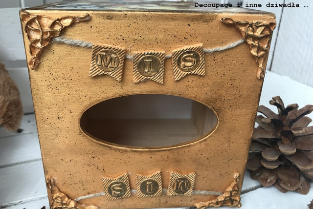 lazur, farbę akrylową, lakier oraz pastę postarzającą złotą.